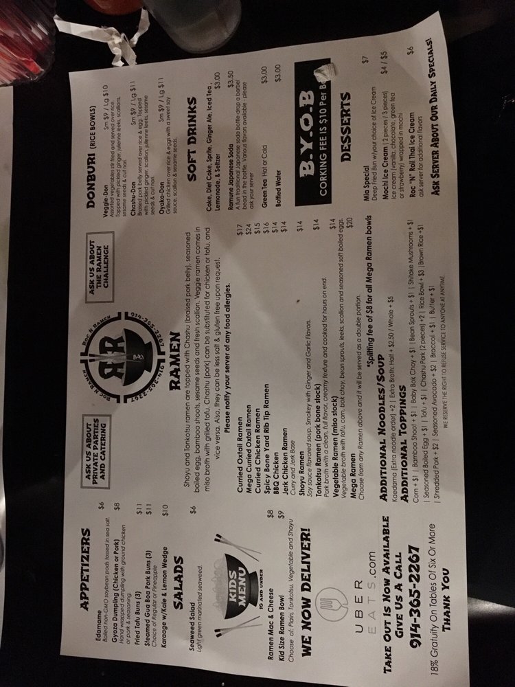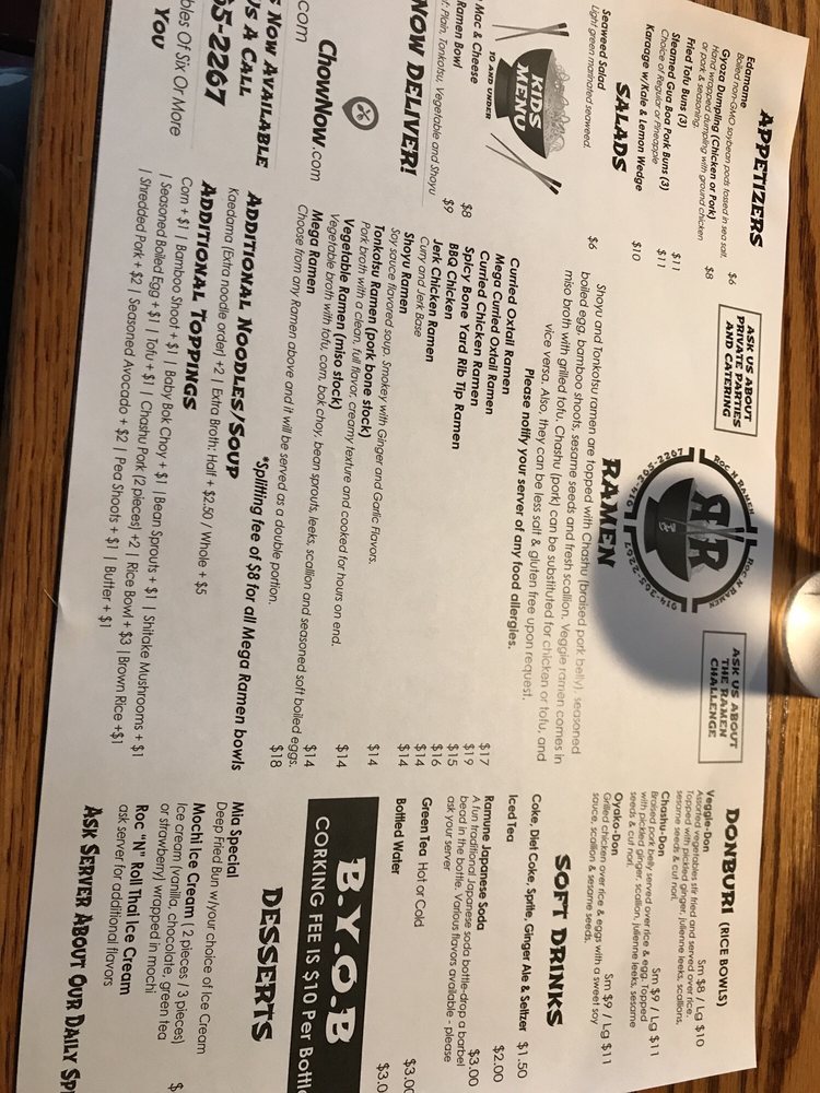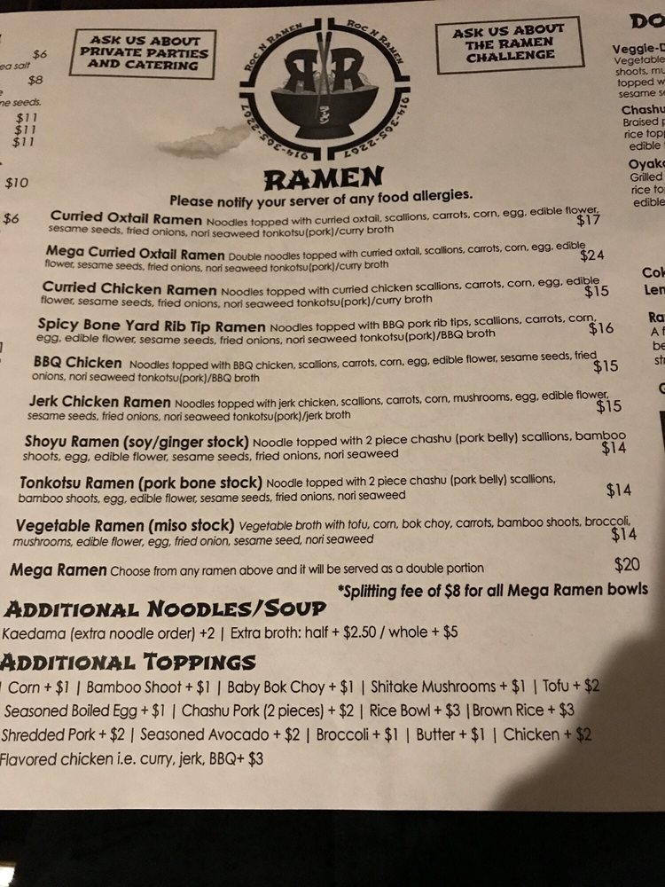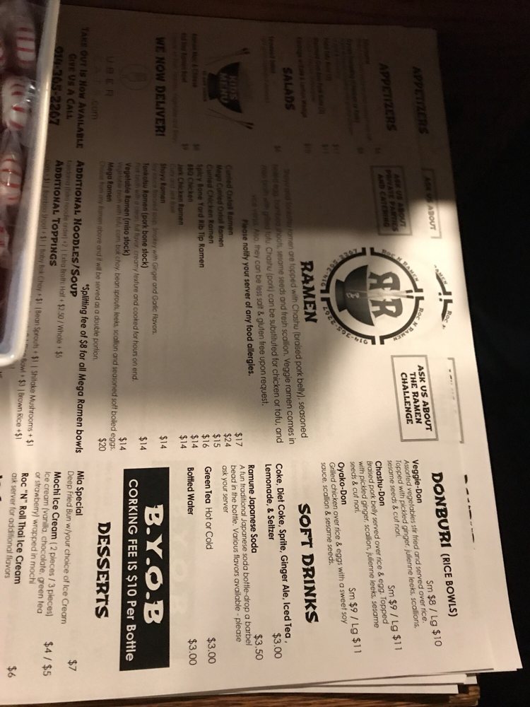 Roc N Ramen Menu (2025 Update)